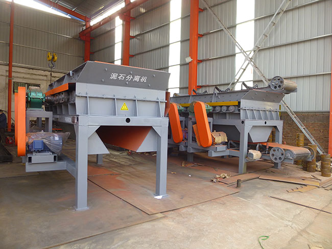 泥石分離機主要由箱體、箱體襯板、碟片、傳動軸、調速電機、電機臺座、鏈條鏈輪、支架等組成。