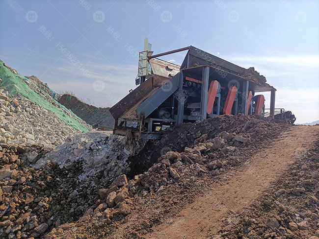 響應綠色礦山,合理利用資源,目前很多砂石廢料堆積如山,大多都是礦山的上皮層,清理疏通河道原料等,里面含有大量的石料,用普通設備選不出來,浪費人力財力,廢棄可惜,還長期占用土地。該機主要針對泥巴多的原料分離篩分、給料輸送等。